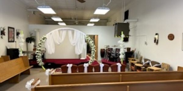 Our chapel is located in the heart of A Touch of Grace Weddings and features stunning stained glass windows and a beautiful altar. It can accommodate up to 100 guests and is perfect for both indoor and outdoor ceremonies. Our reception hall is also available for your celebration.